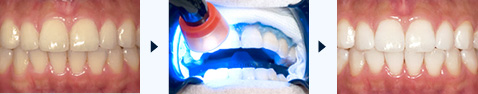 歯面に塗ったホワイトニングジェルに光を照射します。